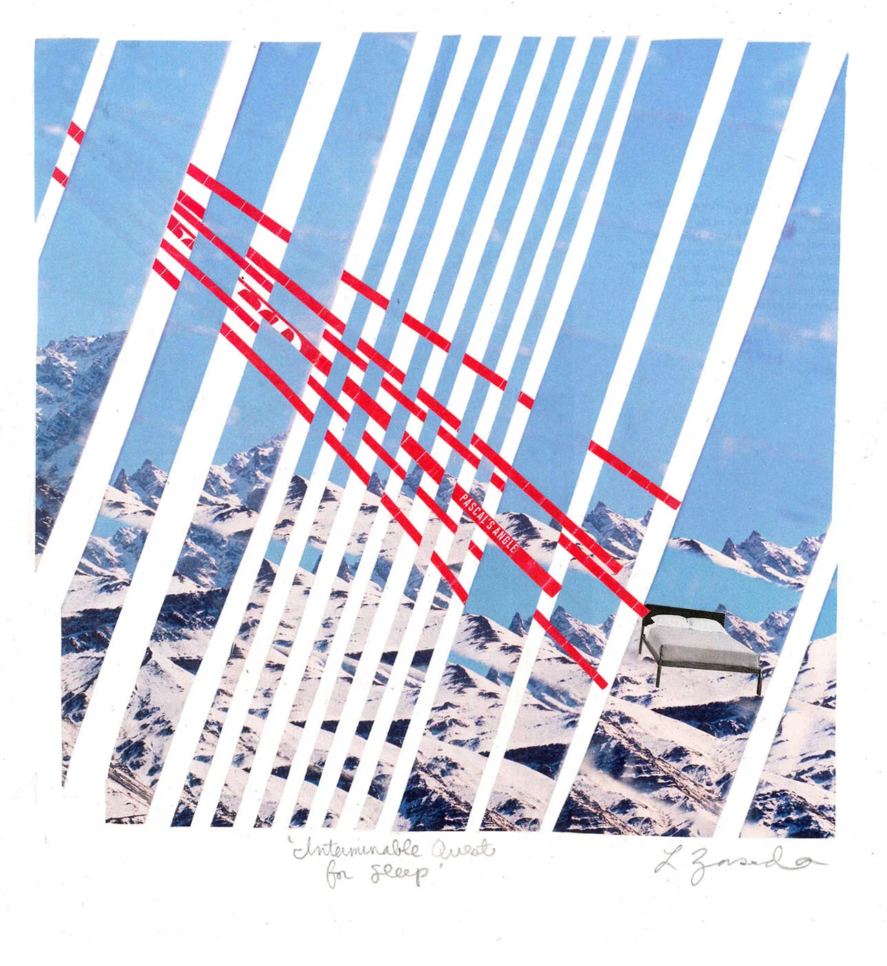 Interminable Quest for Sleep. Collage on Matboard. 2019.